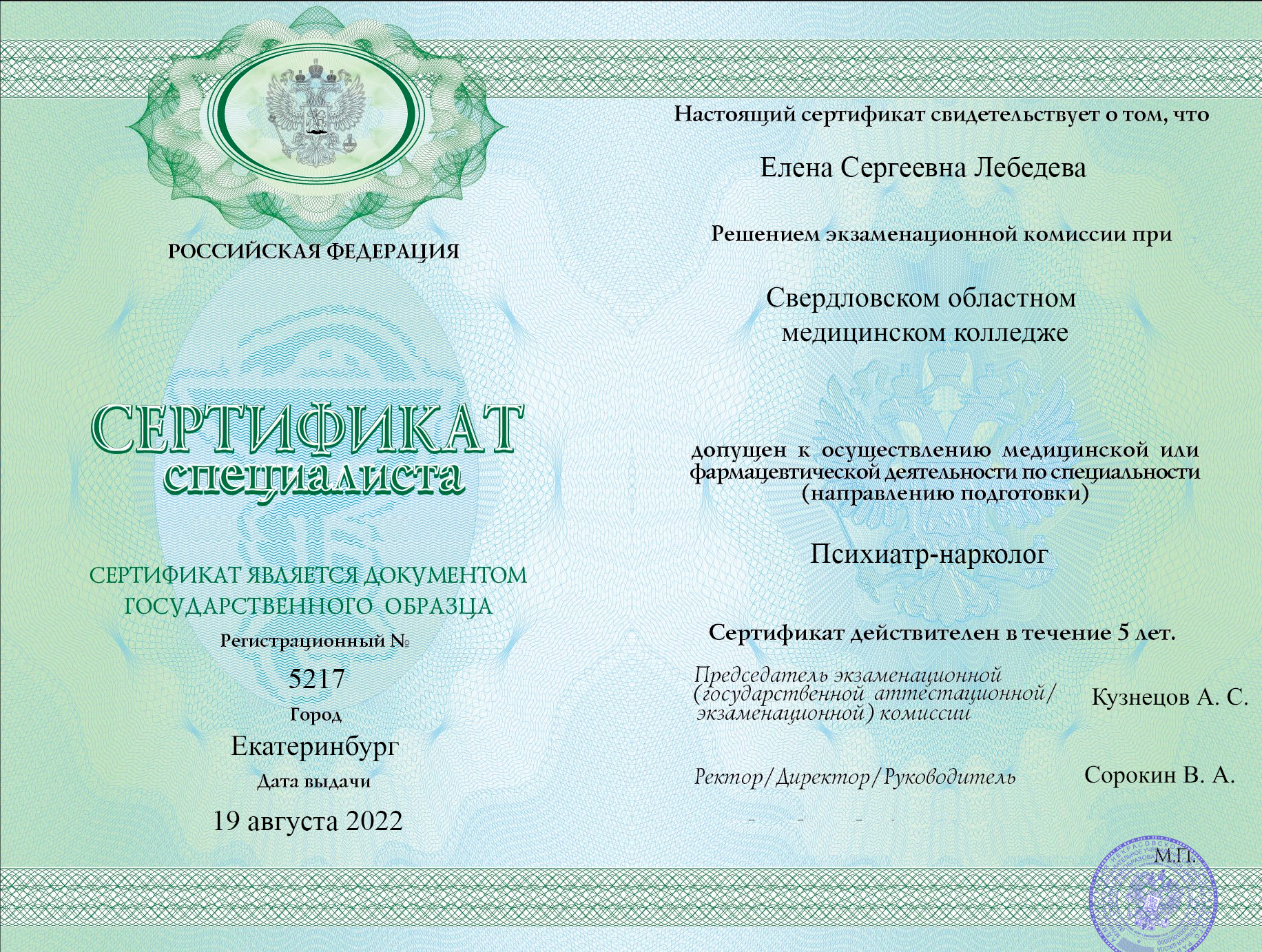 Елена Сергеевна Лебедева врач нарколог клиники доктора Стукаловой в Кущёвской